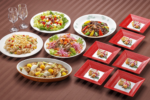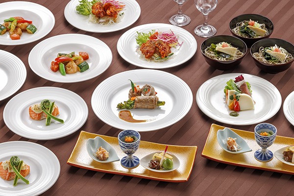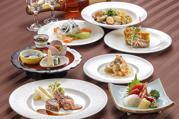 | 御料理(和洋中)お一人様 | ■5,500円コース 6品 ■7,000円コース 7品 ■8,500円コース 7品 ※いずれのコースも消費税・サービス料が含まれております。 ※お飲み物は別途料金がかかります。 |